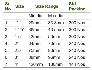 - Sizes Available - 1”,1.25”,1.5”, 2”, 2.5”,3”,3.5”,4”.