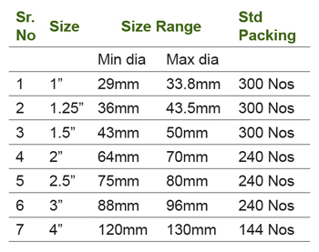 - Sizes Available - 1”,1.25”,1.5”, 2”, 2.5”,3”,3.5”,4”.